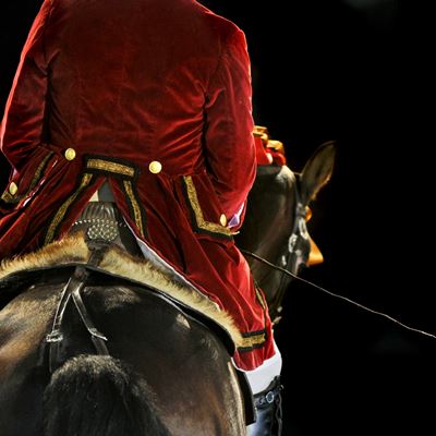 Gravata em microfibra (efeito seda) com símbolo da Escola Portuguesa de Arte Equestre a dourado e em tom bordeaux, tal como usado nas fardas dos cavaleiros e dos xairéis de gala.