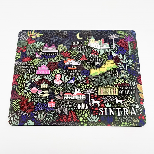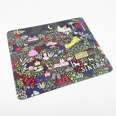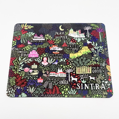 Tapete para rato com base antiderrapante e padrão estilizado do património cultural de Sintra.